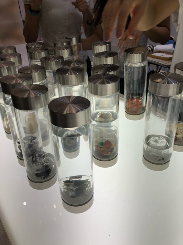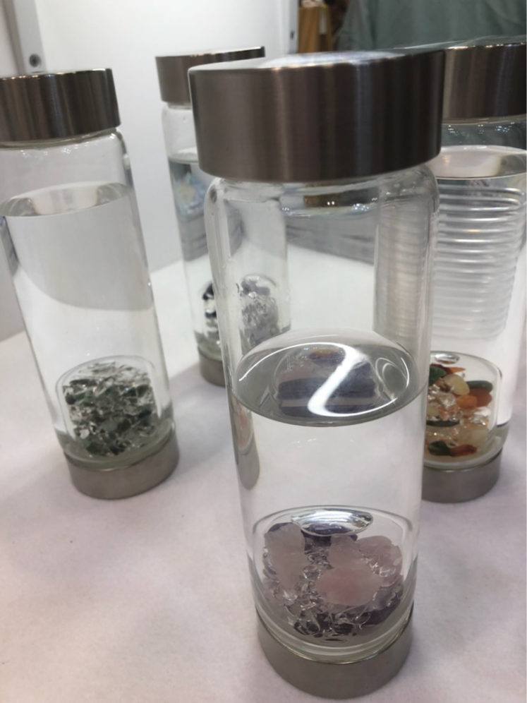 全てのボトルを試飲して、一番甘く美味しく感じた、アドーアのジェムウォーター(ローズクォーツと水晶の入ったボトル)を購入しました