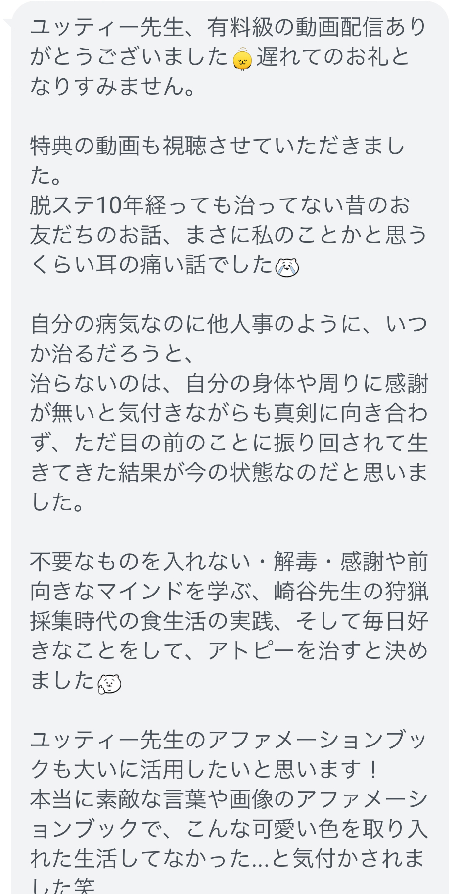 アトピー回復・心と体と魂の健康について発信|アトピーから回復して理想を叶える The Holistic講座主宰|重度アトピー克服|ステロイド25年→脱ステ→薬なし!痒み0、ツルツル肌に!|食・健康・人生の話が9割|フォローすると健康でエネルギー巡る体に。|健康で自分らしく生きる大人を増やし日本をゲンキにすることが使命。