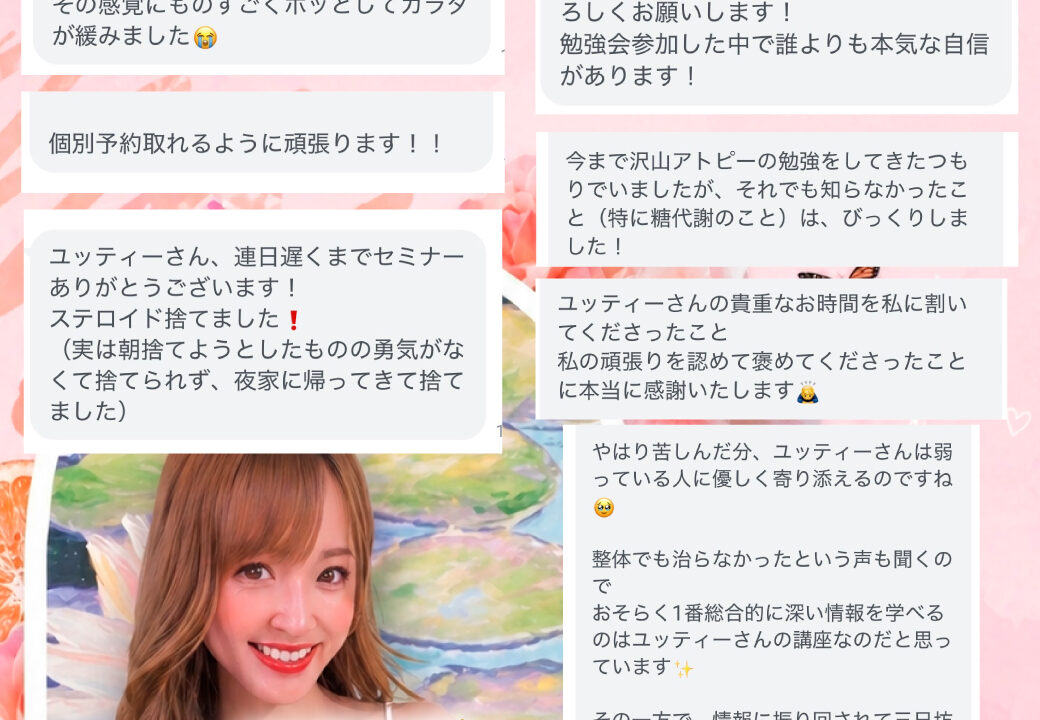 ユッティー先生のアトピーから回復して理想を叶える方法が学べる公式LINEです。