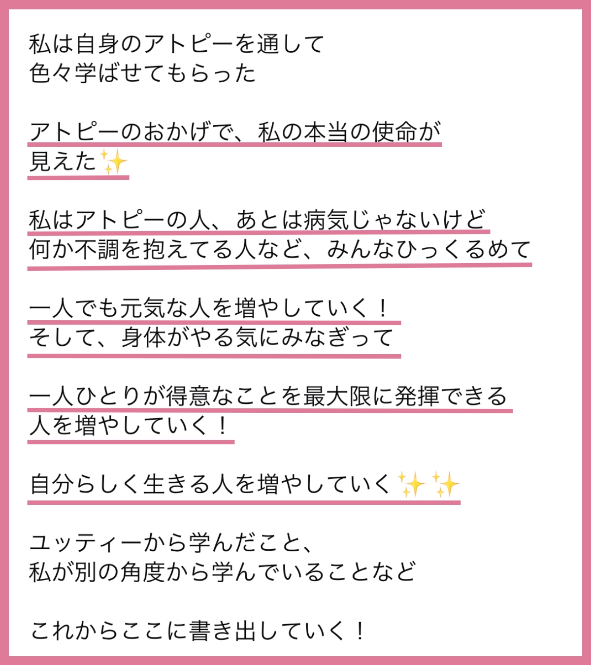 アトピー回復・心と体と魂の健康について発信|アトピーから回復して理想を叶える The Holistic講座主宰|重度アトピー克服|ステロイド25年→脱ステ→薬なし!痒み0、ツルツル肌に!|食・健康・人生の話が9割|フォローすると健康でエネルギー巡る体に。|健康で自分らしく生きる大人を増やし日本をゲンキにすることが使命。